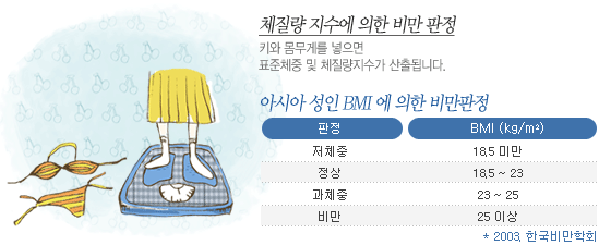 | ex) 177§¯, 75§¸ Àΰæ¿ì BMI = 75/1.77*1.77 = 24.49§¸/§³ |
